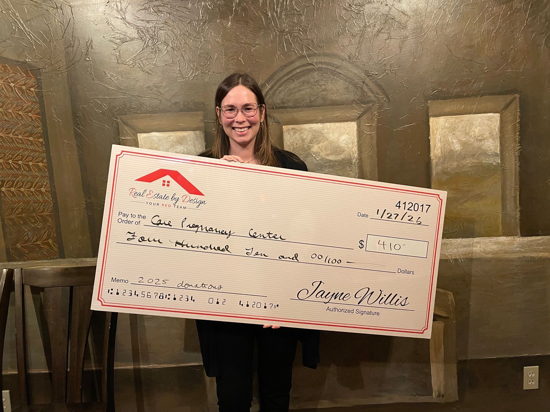 In 2025, Real Estate by Design donated $410 to Care Pregnancy Center!